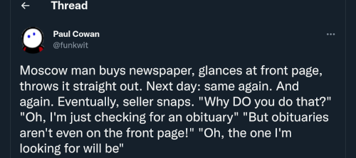 Each image is a link to the thread which it references. The headings that start with 2022-MM-DD are links to that series of posts, in case you want to make bookmarks to a specific day of memes.