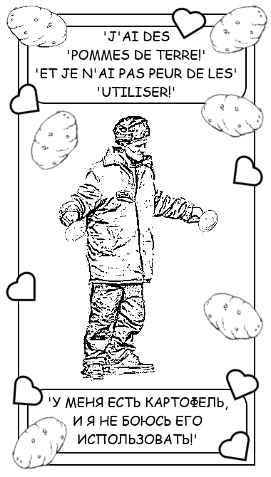 ("I have some potatoes and I am not afraid to use them!" said the mobik.)