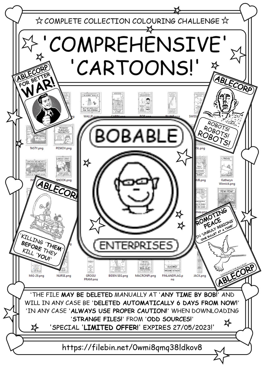 The archive of Bob Able coloring book pages that was uploaded to filebin.net on 2023-05-22.