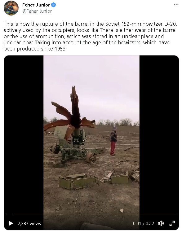 nitter link to old howitzers having their barrels go bendy.