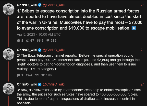 nitter link about bribes in Russia getting more expensive.
