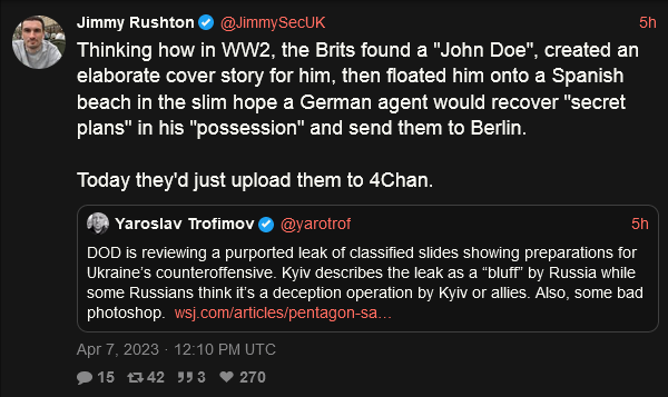nitter link where instead of making elaborate cover stories, people post things to 4chan.