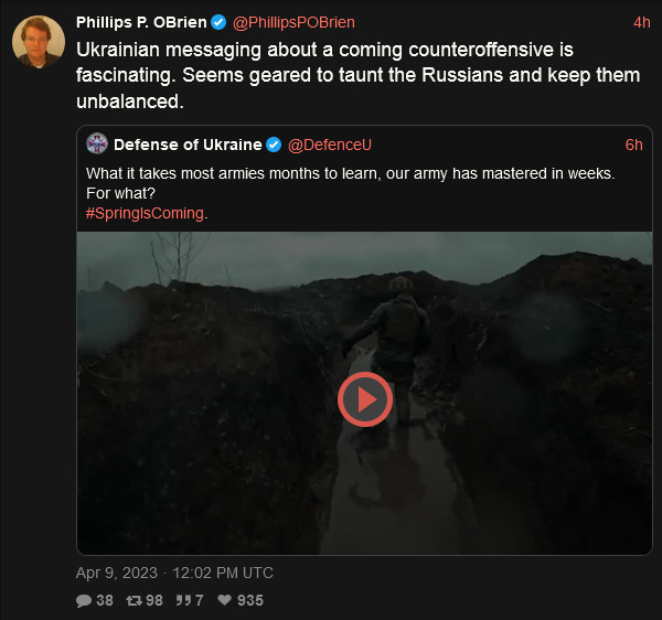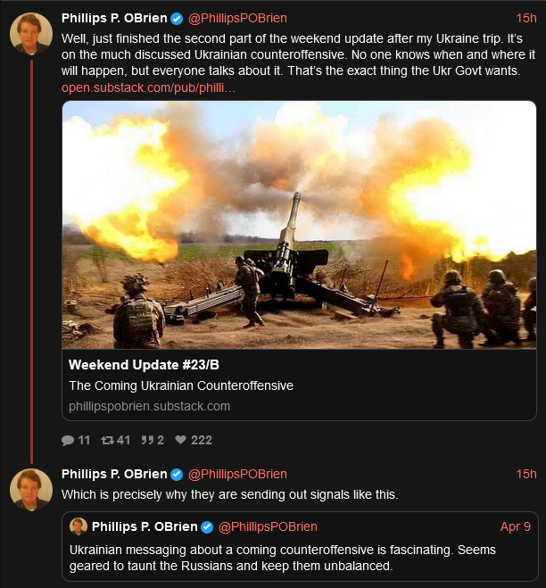 substack link to Philips P. O'Brien talking about Ukraine counteroffensive.