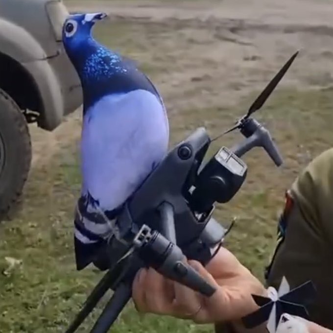 nitter link to a stuffed pigeon attached to a drone.
