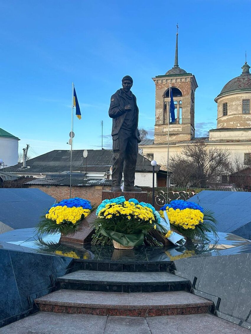 nitter link to original of the monument to Oleksandr Matsyievskyi being unveiled.