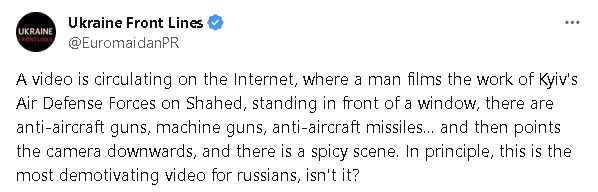 Ukrainian anti-aircraft forces are not demoralized, as the last few seconds of this video show.