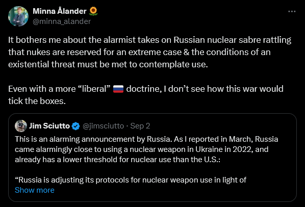 Minna Alander says it's a good idea to quit worrying about Putin's nuclear threats.