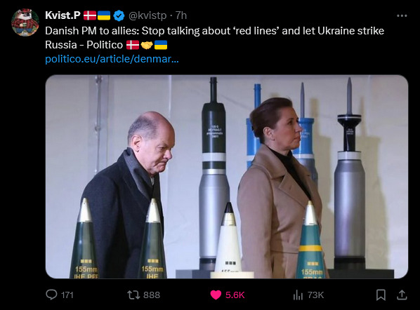 Danish PM says, "stop talking about red lines, let Ukraine strike Russia."