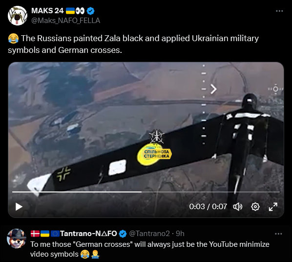 Russians painted a Zala drone with Ukrainian and German symbols.
