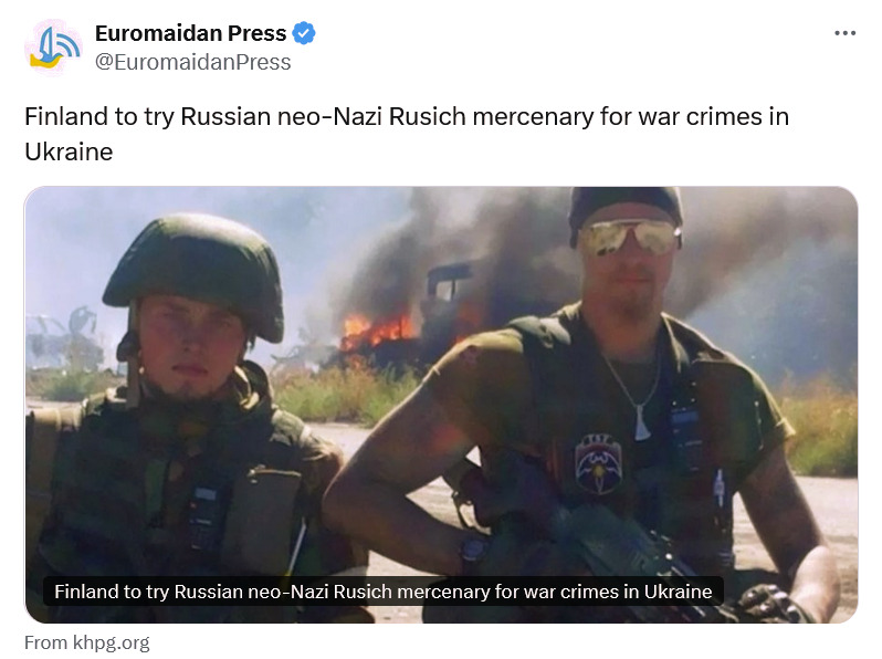 Finland to try Russian neo-Nazi for war crimes in Ukraine.