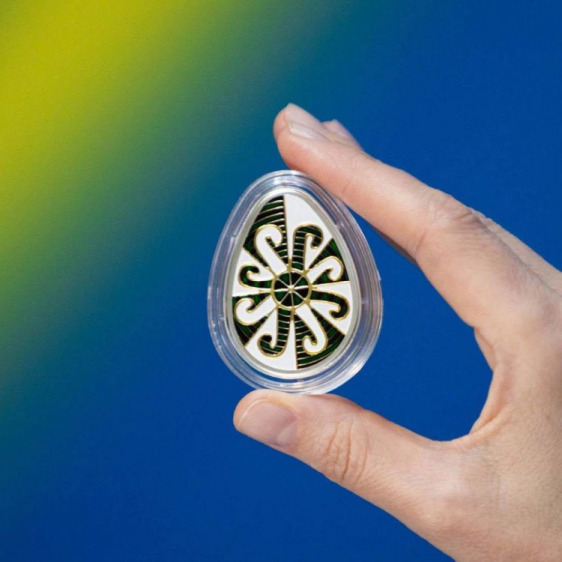 10 hryvnia coin shaped like an egg.