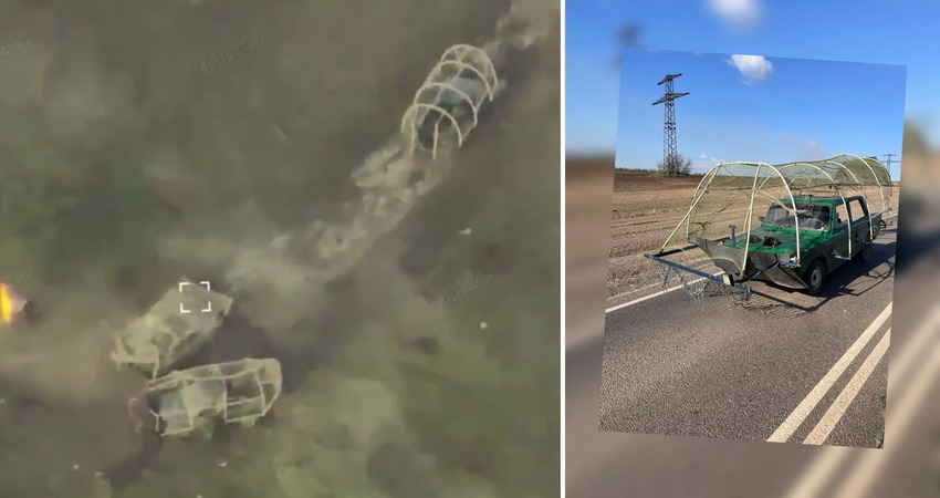 Russian anti-drone units with weird cope cages.