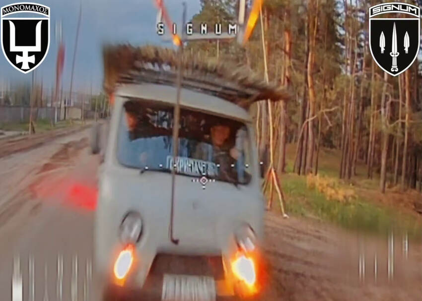 An FPV drone hits a Russian soldier right in the butt.