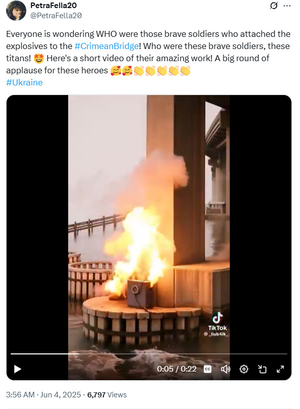 Ukrainian strike on the Kerch bridge.