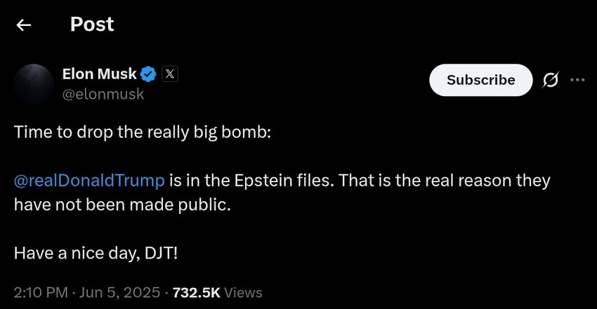 Elon Musk says Trump is in the Epstein files.