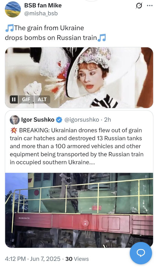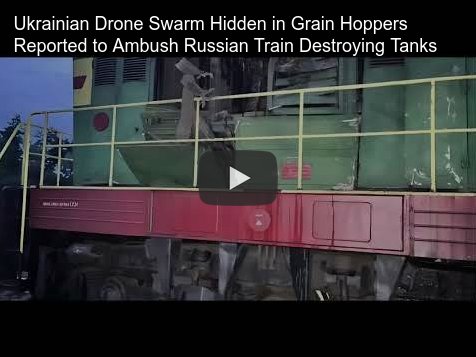 Ukrainian drone swarm destroys Russian train.