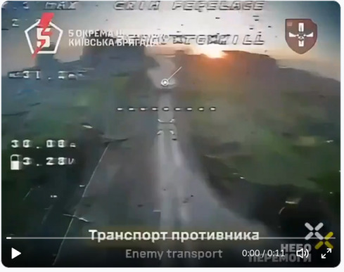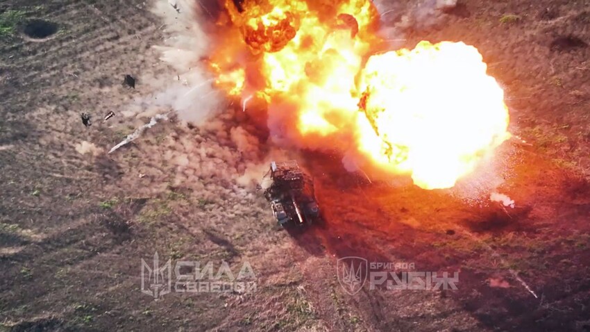 A column of Russian vehicles went boom.